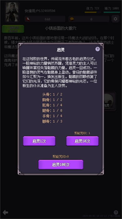 选择小镇后面的大墓穴玩家可以玩家后山的坟地,寻找各种腿骨手骨头骨等等,这些骨头可以帮助玩家启灵,提升角色实力;每个骨骼都对应特定属性加成,收集完整套装还能激活隐藏技能。