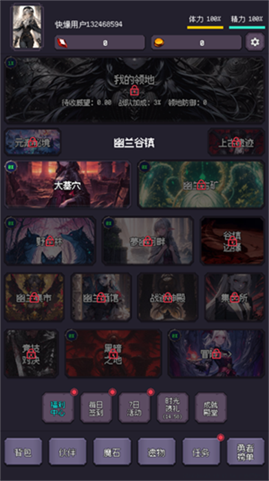 背包,伙伴,随从,榜单,各种提升角色实力的方法,我的领地,玩家即可扩展领地提升领地宅邸的领土;领地系统支持自由布置装饰,不同建筑组合会产生特殊增益效果。