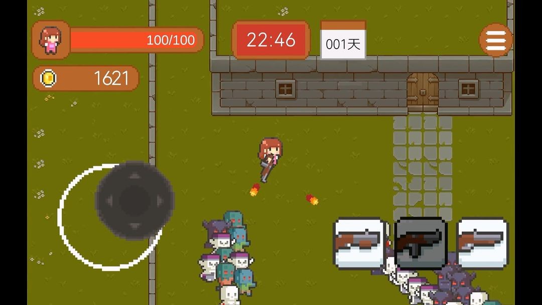 武器升级系统:提供多种武器,每种武器都有不同的射击效果,玩家可以用金币购买或升级武器,击退怪物的攻击。随着游戏进程,玩家可以解锁更强大的武器,体验不同的战斗风格,让游戏保持新鲜感。