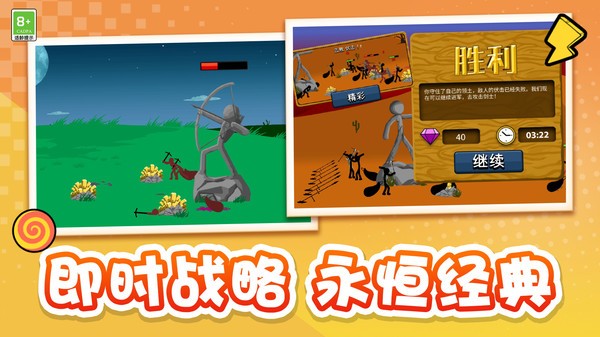 经典的策略战争,自由去参与各种模式,各种激烈的战斗值得去攻略!游戏完美融合了即时战略与角色养成的乐趣,每场战斗都是对玩家战术思维和操作技巧的双重考验。丰富的兵种搭配和多样的游戏模式,让这款火柴人战争游戏成为策略爱好者的不二之选。