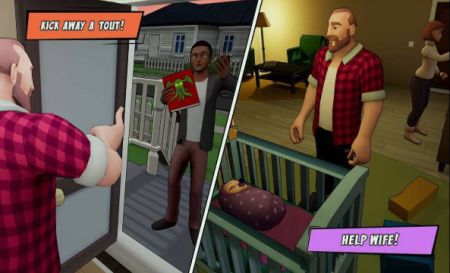 逼真逼真的游戏画面场景,生动立体的父亲角色形象,代入感十足。游戏采用先进的物理引擎,真实模拟各种家庭物品的互动效果,从打翻的牛奶到乱飞的玩具,每个细节都令人忍俊不禁。