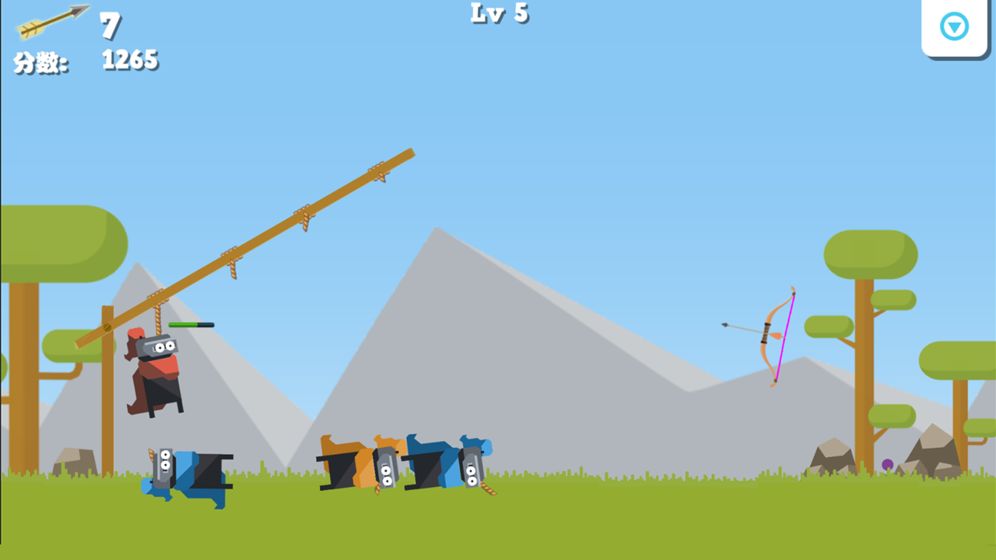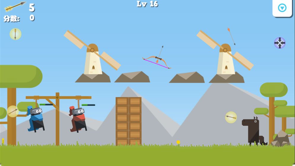 《拯救小骑士》是一款轻松有趣的休闲射击游戏,玩家将扮演一位勇敢的弓箭手,肩负着解救被困小骑士的重任。在游戏中,你需要精准地射出箭矢,斩断绑住骑士的绳索,将他们从危险的木架上安全解救下来。每一关都设置了严格的次数和时间限制,你必须合理规划射击策略,在有限的资源内完成任务。游戏不仅考验你的反应速度和判断力,还需要你时刻关注骑士的生命值,避免误伤导致任务失败。