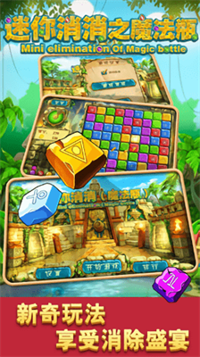 《迷你消消之魔法瓶》是一款充满魔幻色彩的休闲益智游戏,以经典的消除玩法为核心,融入了丰富的关卡设计和精美的视觉效果。游戏中,玩家需要仔细观察五彩斑斓的宝石,快速匹配三个或更多同色宝石进行消除,解锁更多精彩内容。随着关卡的推进,难度逐渐提升,玩家将面临更多挑战。游戏还提供了多种道具和特效,让每一次消除都充满惊喜,为玩家带来轻松愉快的游戏体验。