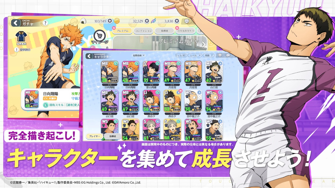 游戏汇集了原作中所有知名角色,包括乌野高中、猫间高中等各校精英。你可以自由组建梦之队,挑战全国大赛的巅峰。故事模式采用全语音演绎,完美重现漫画中的经典情节。除了常规比赛,游戏还提供PVP对战、每日挑战和锦标赛等多种玩法。独特的3D迷你角色系统让比赛更加生动有趣,而策略性的技能卡组合则考验玩家的战术思维。即使离线也能获得收益,让角色持续成长。