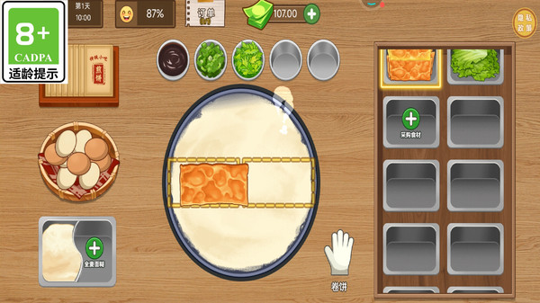 当所有食材放置完成后,点击“卷饼”图标即可包裹煎饼,完成操作后自动进入下一步流程接单送餐阶段。注意卷饼的松紧度会影响顾客满意度,完美卷制才能获得最高评价。