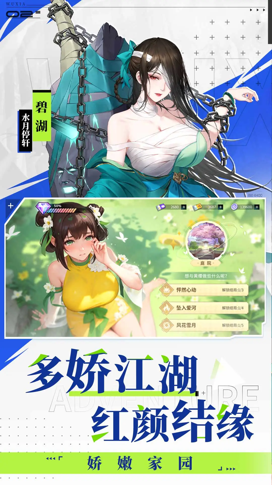 全剧情配音,精美spine生动演绎,近百位侠客红颜随心养。特色养成系统让每位角色皆能独步江湖,成为你的顶级战力。元气小师妹、魅惑女刺客、绷带病娇同门……统统听你号令!