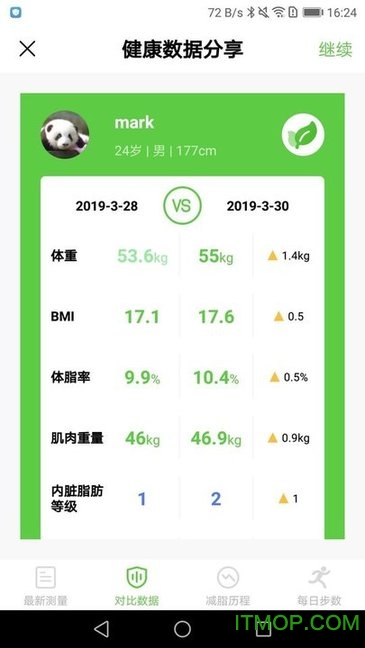 允许您对于不同日期的指标项目进行对比,及时了解您的身体变化。通过时间轴对比功能,可以清晰看到减脂增肌的成效。