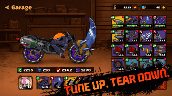 在游戏主界面,你可以自由选择想要挑战的关卡,开启你的冒险征程。每个关卡都经过精心设计,带来不同的地形挑战和敌人配置。确定好关卡后,只需点击启动按钮即可开始游戏。在游戏过程中,左右方向按钮控制着摩托车的转向和翻转动作,而绿色的油量表则实时显示你的燃料储备情况。特别值得一提的是,在空中完成翻转动作可以积累能量,当能量条充满时,点击右侧按钮就能释放强大的喷气加速技能,帮助你在关键时刻突破障碍或甩开敌人。游戏会在你成功抵达终点或油量耗尽时结束,每次挑战都充满变数。此外,你还可以通过车库系统对摩托车进行个性化改装,提升性能或改变外观。游戏还提供多个可选角色,每个角色都有独特的属性和技能,让你在不同关卡中体验多样化的玩法策略。