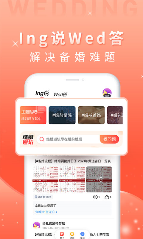 海量新人真实体验,建立活跃的备婚社区,新人可以分享经验、提问解惑,形成互助友好的备婚氛围。平台定期举办线上分享会,邀请婚礼达人分享实用经验。