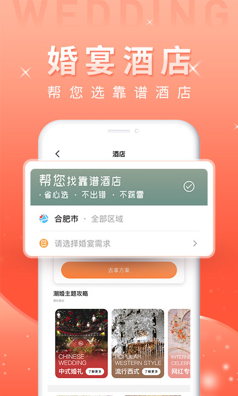 严选入驻商家,建立严格的审核机制,定期考核服务质量,确保每对新人都能获得高品质的婚礼体验。平台会对商家进行实地考察,查看真实案例,只有通过多重审核的优质商家才能入驻。