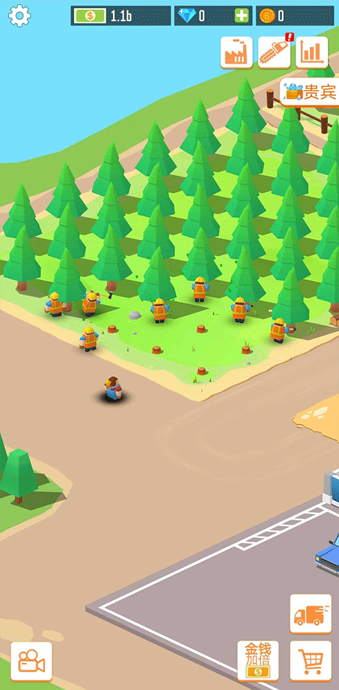 游戏创新性地引入了可持续发展的概念。玩家需要合理规划伐木与植树的比例,通过雇佣植树工保持森林资源再生。购买更多土地扩大绿化面积,打造生态友好的木材产业。