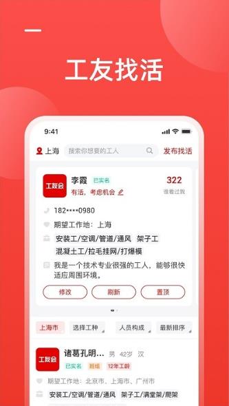 工友慧app官方版拥有强大的智能匹配系统,用户只需填写个人简历和技能特长,系统就会自动为其推荐最适合的工作岗位,帮助用户快速找到心仪的工作。平台采用先进的人工智能算法,能够根据用户的职业背景、工作经历和求职偏好进行深度分析,智能推荐最匹配的工作地点和岗位类型,让求职过程更加轻松高效。对于建筑企业来说,平台提供了便捷的招聘发布功能,企业可以详细填写工作类型、薪资待遇、工作地点等招聘需求,系统会自动匹配合适的求职者,帮助企业快速找到需要的工人。此外,平台还配备了强大的搜索筛选功能,用户可以根据薪资范围、工作地点、岗位类型等多个维度进行精准筛选,快速找到符合自己要求的工作机会。