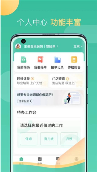 阿姨课堂大咖直播:上户指南、学习练习同步进行、专业技能涨知识。定期邀请行业专家开展线上培训,内容涵盖家政服务技巧、客户沟通、行业规范等实用课程,帮助从业人员全面提升专业素养。