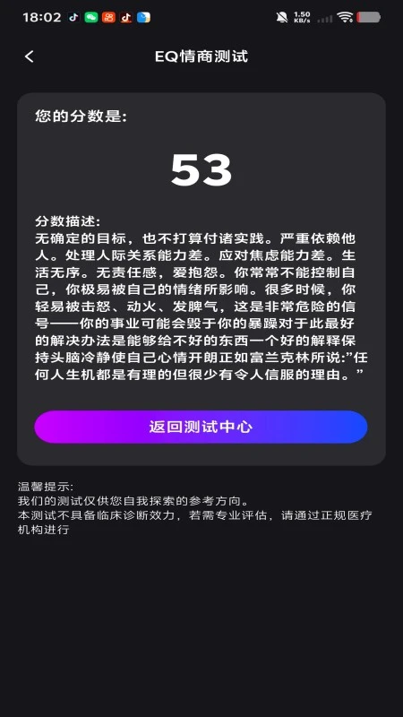 IQ&EQ测试模块,提供科学评估,帮助用户了解智力与情商水平。