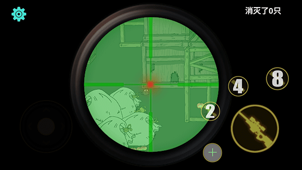 游戏的操作非常简单易上手,首先需要下载安装《保卫粮仓》手机版,安装完成后点击开始按钮即可进入游戏。游戏场景设定在一个充满粮食的仓库里,玩家需要仔细观察,找出隐藏在粮堆中的老鼠。通过左下角的虚拟轮盘可以控制准星移动,将准星对准目标。游戏提供了2倍、4倍和8倍三种放大倍镜供玩家选择,点击右侧对应的数字按钮即可切换,这能帮助玩家更精准地瞄准那些狡猾的老鼠。最后点击右下角的射击按钮,一发入魂,将老鼠消灭干净。随着游戏进程,老鼠会变得越来越狡猾,移动速度也会加快,需要玩家不断提升射击技巧。