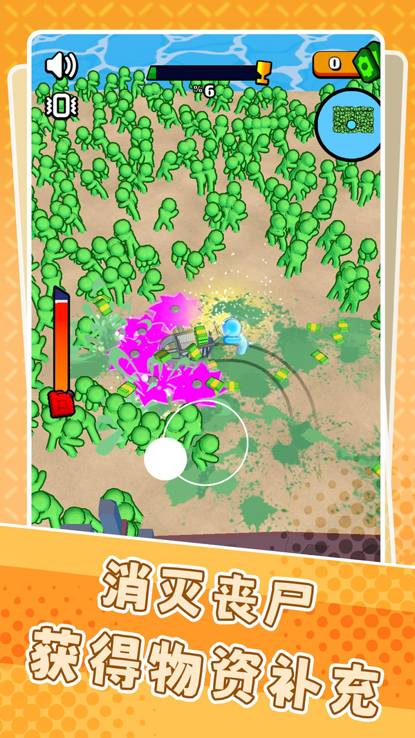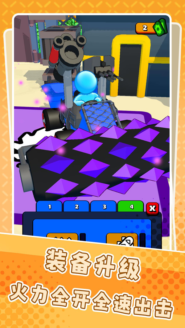 游戏开始时,玩家需要操控角色推着改装战车前进,开启收割之旅。当遭遇丧尸潮时,玩家可以尽情释放战车的威力,使用各种武器疯狂收割丧尸。值得注意的是,收割的丧尸头颅会自动转化为游戏货币,玩家需要定期返回安全区整理战备。随着游戏进程推进,完成特定任务后还能获得神秘宝箱,开启后可以获得强力装备和道具,大幅提升战斗能力。