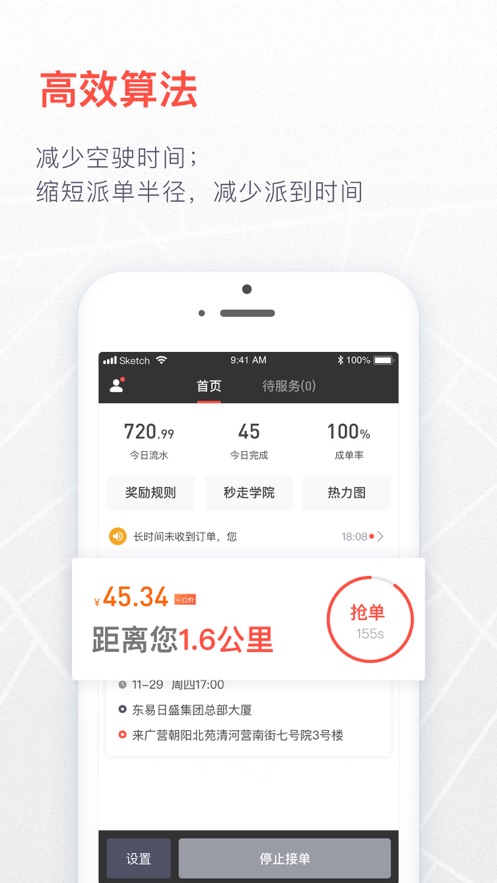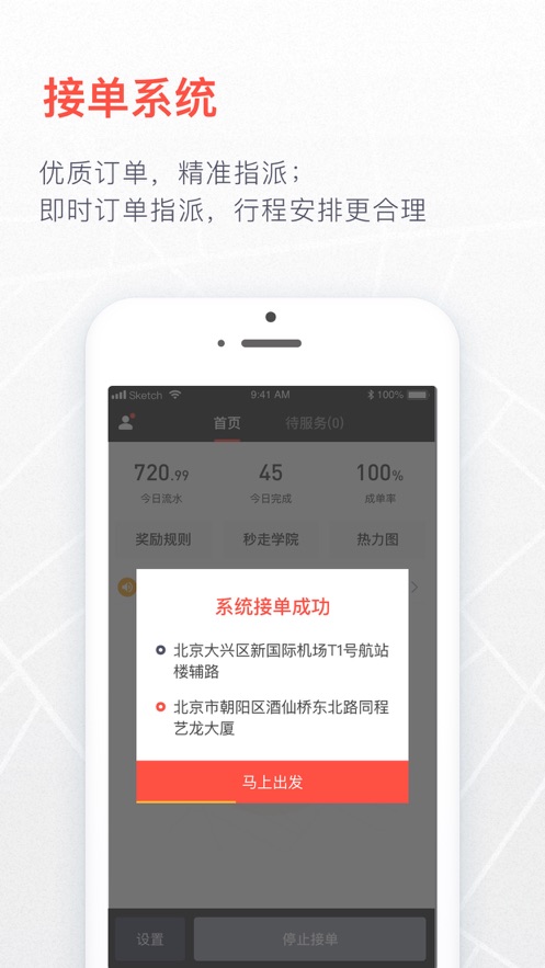 操作简单订单自动推送,只需点一下,即可接单。系统采用智能算法,根据司机位置和习惯优先推送优质订单。