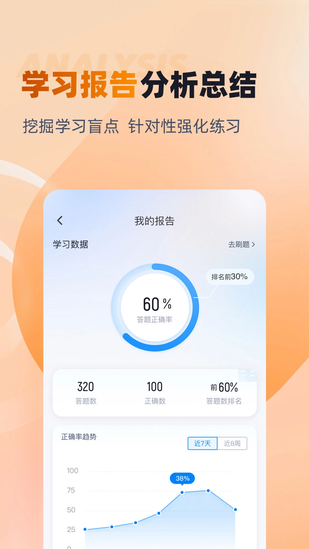 学习数据统计:详细记录每日学习时长、正确率趋势等数据,生成多维度的学习分析图表