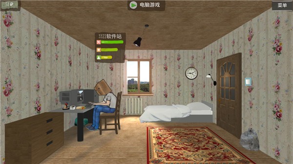 死宅的一生汉化版是一款极具黑色幽默的模拟养成游戏,玩家将沉浸式体验一位足不出户的资深宅男生活。在这个与现实时间同步的虚拟空间里,你可以随心所欲地布置自己的小天地,通过网购收集心仪的二次元周边,但必须时刻关注角色的三项生存指标——快乐度、平静度和饱食度。游戏以夸张的手法展现了现代社会中"家里蹲"群体的生活状态,既荒诞又真实,让玩家在轻松搞笑的表象下,思考关于社交隔离与自我满足的深层命题。