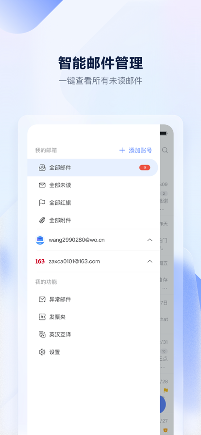 【智能手势操作】通过简单的左右滑动手势,即可快速完成邮件标记、移动、删除等常用操作。