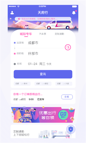 天府行网约车是一款专注于提升个人出行效率的智能应用,致力于为用户提供安全、便捷、高效的约车服务。用户只需简单注册个人账户,即可随时随地输入目的地开启约车服务。所有司机均经过严格的实名认证和背景审核,确保乘客的出行安全无忧。无论是日常通勤、商务出行还是旅游探亲,天府行网约车都能满足您的多样化需求,让您的每一次出行都更加轻松愉快。