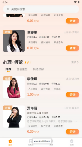 权威咨询服务:平台整合了职业规划、面试技巧、心理辅导等多元化服务内容,由资深职场专家和心理咨询师团队提供专业指导,确保每位用户都能获得高质量的咨询服务。
