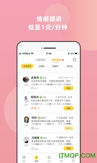 内置网络电话,24小时呼通心理专家:平台整合了先进的网络电话技术,确保用户随时都能联系到专业心理咨询师,获得及时帮助。