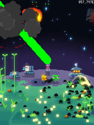 游戏中会随机掉落各种能量物品,玩家需要及时收集这些资源。使用武器击碎陨石可以获得更多稀有物品。收集到的能量可以在飞船中进行转化,转化为绿色点数后就能促进星球植被生长。当绿色点数达到100%时,整个星球将焕然一新,呈现出生机勃勃的景象。