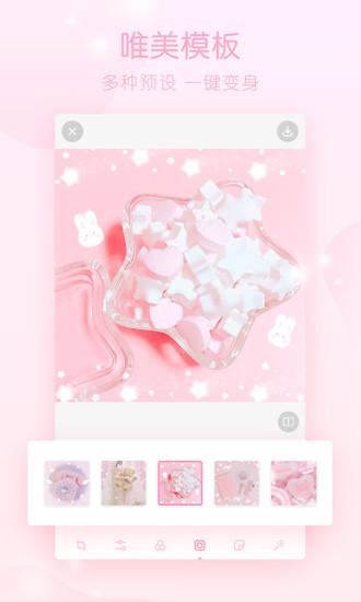 一键变身梦幻少女"雪花飞舞、星光闪烁、花瓣散落,这些点点滴滴将世界装扮成一个梦幻仙境"打开装满魔法道具的梦幻修图相机,用它们来装饰每一个珍贵的画面吧。这款修改版不仅保留了原版的所有梦幻特效,还额外添加了更多独家素材,让你在修图时拥有更多创意空间。无论是想打造甜美可爱的风格,还是追求浪漫唯美的效果,都能在这里找到心仪的工具。