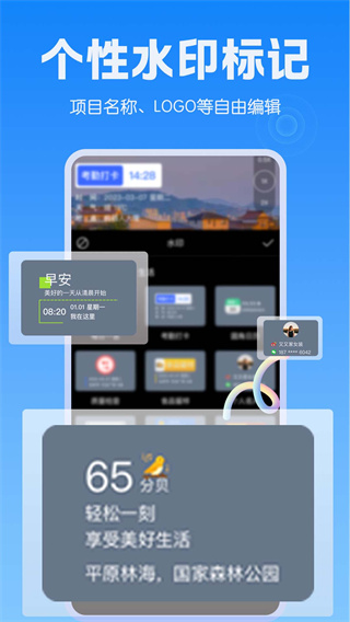 提供丰富多样的水印添加功能,用户可以根据不同场景需求选择时间、地点、节日等各类水印素材,满足日常记录、工作汇报等多种用途。内置的专业水印模板库包含打卡专用、品牌宣传、工程记录等多种类型,所有模板都采用防篡改技术,确保水印信息的真实可靠。个性化设置功能让用户能够自由调整水印内容、字体样式、大小和颜色,无论是商务文件还是学习笔记都能完美适配,打造专属的水印效果。