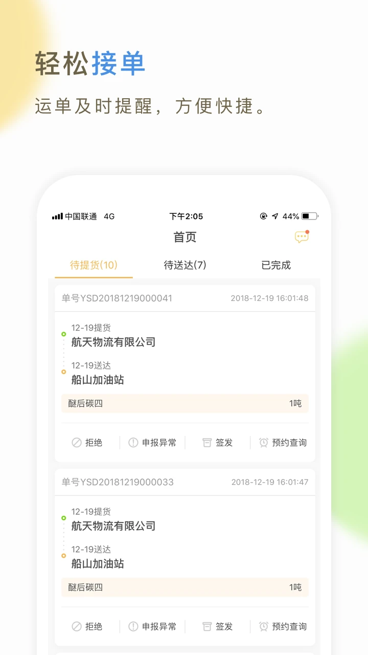 靠谱货源等您来抢,专业车队等您挂靠,实时记录您的运单,为您提供全程保障。