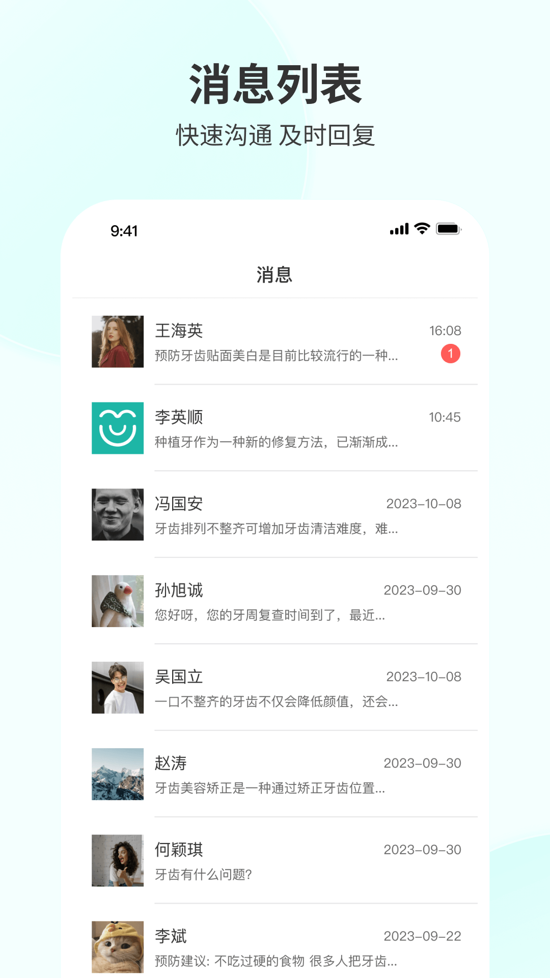 支持图文、语音功能,与患者进行有效交流沟通,及时解答相关疑问。内置的快捷回复模板和常见问题库,让医护人员能够更高效地处理患者咨询。此外,聊天记录自动保存功能便于后续追溯,确保医患沟通的完整性和准确性,为诊疗过程提供可靠依据。