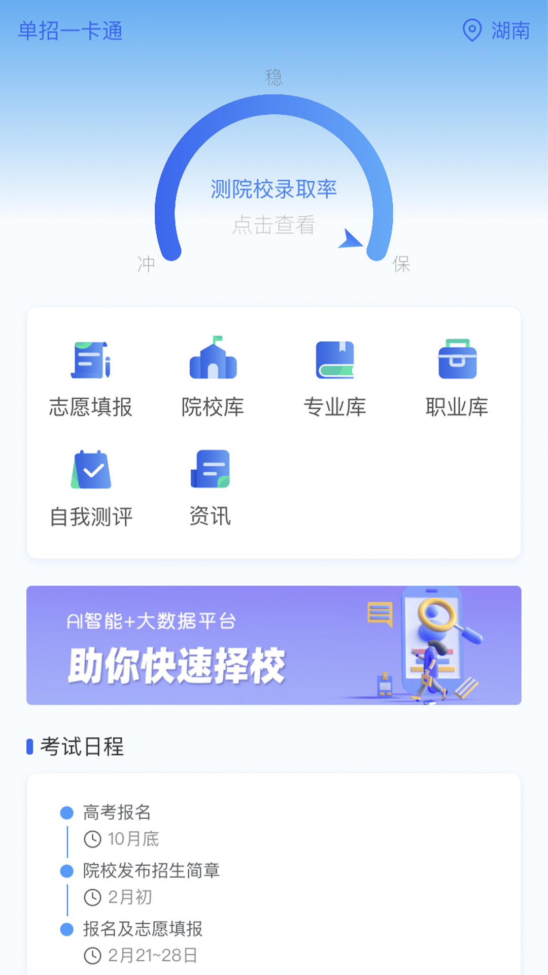 单招一卡通是一款专为高职单招考生打造的智能服务平台,整合了院校查询、专业分析、职业规划等核心功能。平台通过大数据技术提供全国单招院校的历年录取数据查询,并结合最新政策进行专业解读。系统内置智能生涯测评工具,可根据学生兴趣、能力、性格等多维度推荐适合专业,同时提供多种志愿填报方案。无论是院校筛选、专业匹配还是志愿表生成,都能帮助考生快速完成决策流程,大大提升单招备考效率。