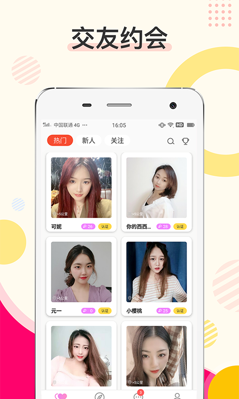 同城交友服务让你可以轻松找到附近的单身用户,线上互动,线下约会;一键搭讪功能让心动不再犹豫,快速开启甜蜜对话;恋爱社区汇聚众多高颜值用户,通过动态分享让你更全面地了解TA的生活;1V1视频聊天功能提供私密交流空间,想怎么聊就怎么聊;实名认证系统采用多重验证机制,确保每个用户都真实可靠。