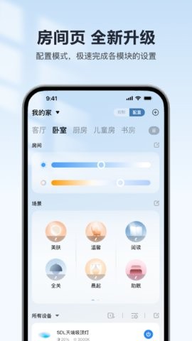 欧享家app是一款专为智能家居打造的便捷控制软件,它将您的家划分为多个独立房间,每个房间的设备数量一目了然,并支持自定义房间类型。通过这款应用,您可以轻松调节每个房间的灯光系统,无论是主灯、筒射灯还是灯带,都能实现智能开关与亮度调节,为您打造最舒适的居家光环境。无论是日常起居还是休闲娱乐,欧享家都能为您提供个性化的智能照明解决方案,让科技真正服务于生活。