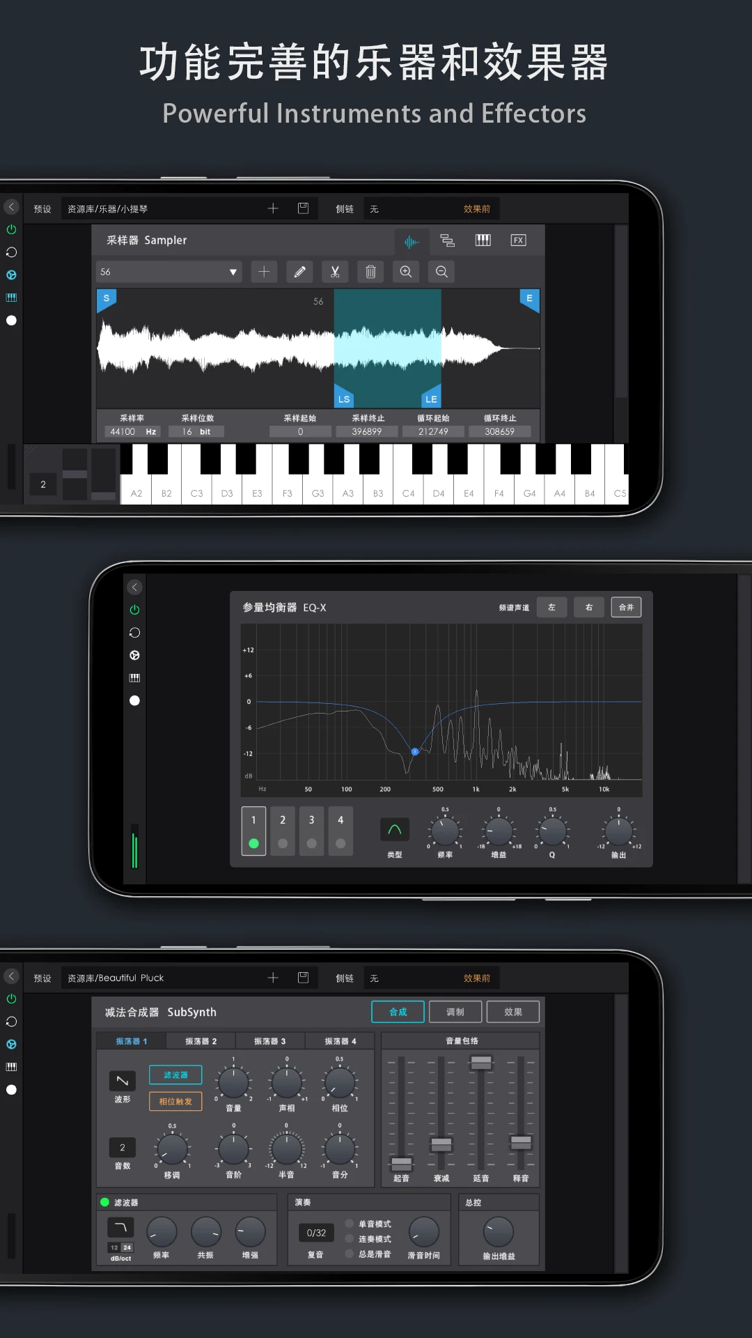 为移动端专门优化的音乐制作交互体验;