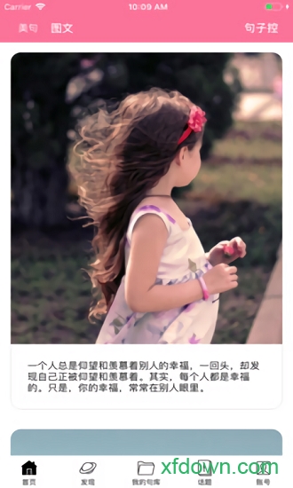 句子控app是一款专注于美句美文分享与推送的优质软件,致力于为用户打造一个充满诗意与温暖的文字世界。在这里,你可以发现海量唯美句子、经典电影台词、动漫人物语录以及触动心灵的名人名言,让平凡的生活因文字而熠熠生辉。无论是清晨的励志鸡汤,还是深夜的治愈短句,都能为你的每一天增添独特韵味。如果你渴望在快节奏的生活中寻找片刻宁静,这款软件绝对是你的不二之选。
