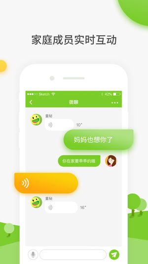 家庭成员实时互动:内置的微聊功能让家长和孩子可以随时保持联系。家长发送的文字或语音消息会被机器人自动转换为适合孩子接收的形式,同时孩子与机器人的对话也会实时传送给家长,让亲子沟通更加便捷有趣。