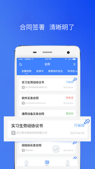 云合同是一款功能强大的在线合同服务应用,为用户提供从合同生成到签署再到履行监管的一站式解决方案。作为国家认证的电子合同平台,云合同致力于打造安全、便捷、高效的合同管理生态链,帮助个人和企业突破地域限制,随时随地完成合同签署与管理。无论您是需要签订商务协议、劳动合同还是其他法律文件,云合同都能满足您的需求,让合同签署变得前所未有的简单高效。