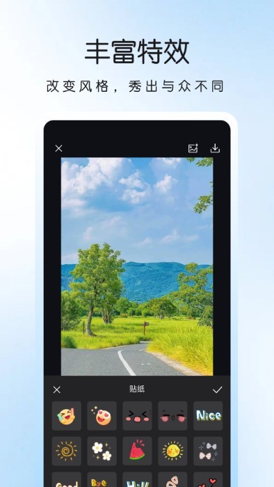 改变风格,秀出与众不同。软件提供多种特效选择,让你的照片瞬间脱颖而出。