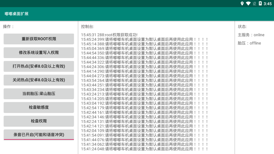 作为嘟嘟车机系统的重要补充,这款扩展应用专注于解决高权限功能的使用难题,特别是针对安卓高版本系统的适配问题。它突破了传统车机应用的限制,提供了更深入的系统访问权限,让用户能够充分发挥设备的潜能。应用还特别优化了热点开启功能,在保证系统安全的前提下,为用户提供了更便捷的网络共享解决方案,是提升车机使用体验的必备工具。