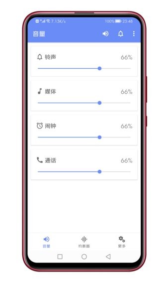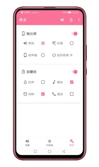 音量君手机版是一款功能强大且操作简便的音量管理工具,专为追求极致音频体验的用户打造。它不仅能够精准调节手机的基础音量设置,包括铃声、媒体、通话和闹钟等,还能通过创新的音效调节功能为用户带来沉浸式的听觉享受。独特的音量锁定功能确保您的设置不会意外改变,而清晰的百分比显示让音量调整更加直观。此外,软件支持多种音频输出模式,搭配个性化的桌面音量显示组件,让您的手机操作体验焕然一新。