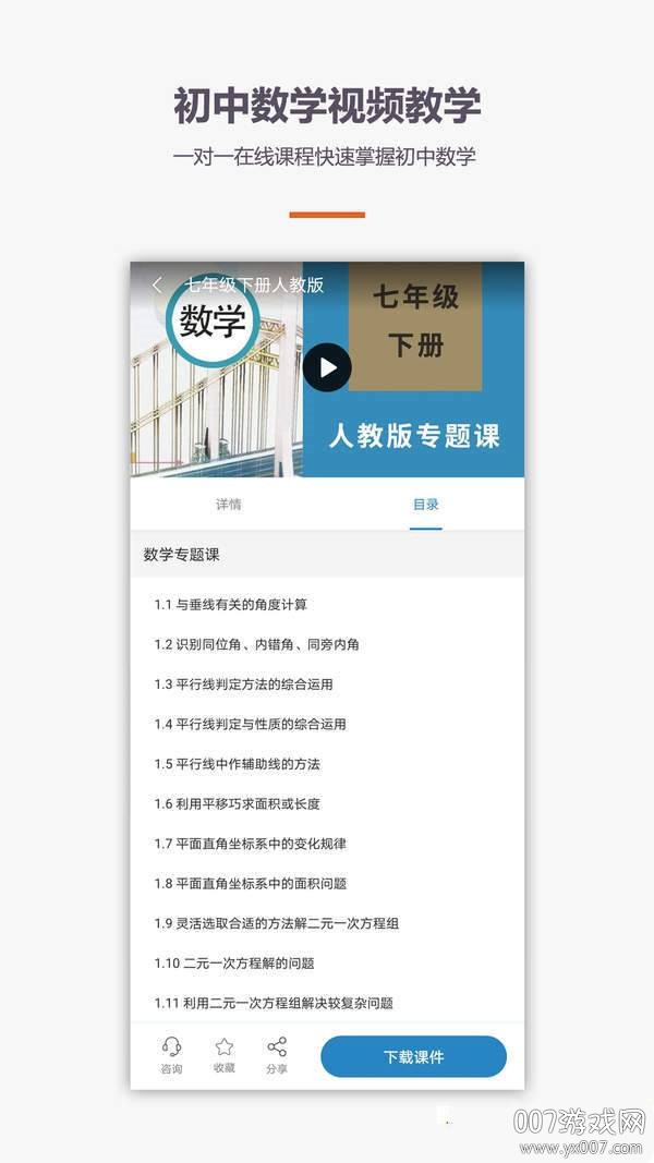 首先,用户需要在本网站下载并安装该款app。安装完成后,使用手机号进行注册或直接登录。进入软件首页后,你会发现大量精心设计的免费课程,涵盖初中数学各个知识点。只需简单报名,就能在开课时准时参与学习。此外,app还提供配套教材下载功能,方便用户随时查阅学习资料,巩固课堂知识。