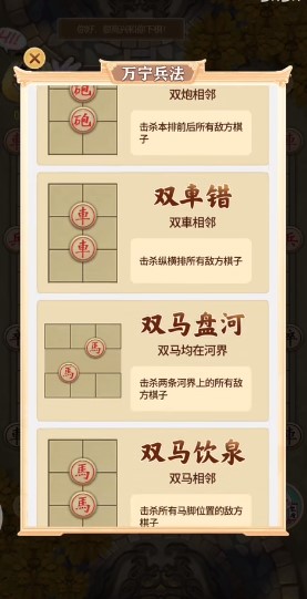 《万宁象棋排兵布阵》作为万宁象棋大招版的革新之作,将传统象棋与策略竞技完美融合。游戏中玩家可自由搭配"马后炮""重炮杀"等数十种战术大招,通过智慧布局实现一招制敌。全新加入的兵法系统让每场对局充满变数,无论是新手还是棋坛老手,都能在快节奏的棋局中体验运筹帷幄的快感。抖音平台超千万玩家验证的爆款玩法,搭配精致的古风棋盘与炫酷技能特效,带来前所未有的象棋竞技体验。