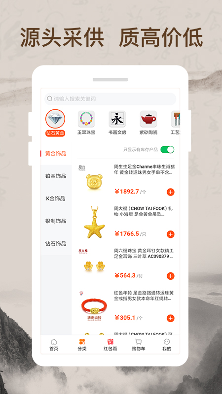 钻石黄金、玉翠珠宝:精选各类贵金属首饰和天然宝石,满足不同场合的佩戴需求。