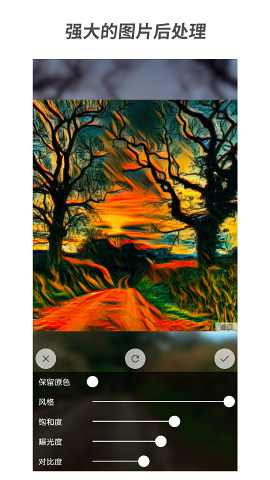 这里还提供了十分强大的图片后处理技术,各种工具应有尽有,饱和度和曝光度可以自由设置。除了基础参数调整,还支持局部修饰、背景替换等高级功能,满足专业用户的精细修图需求。