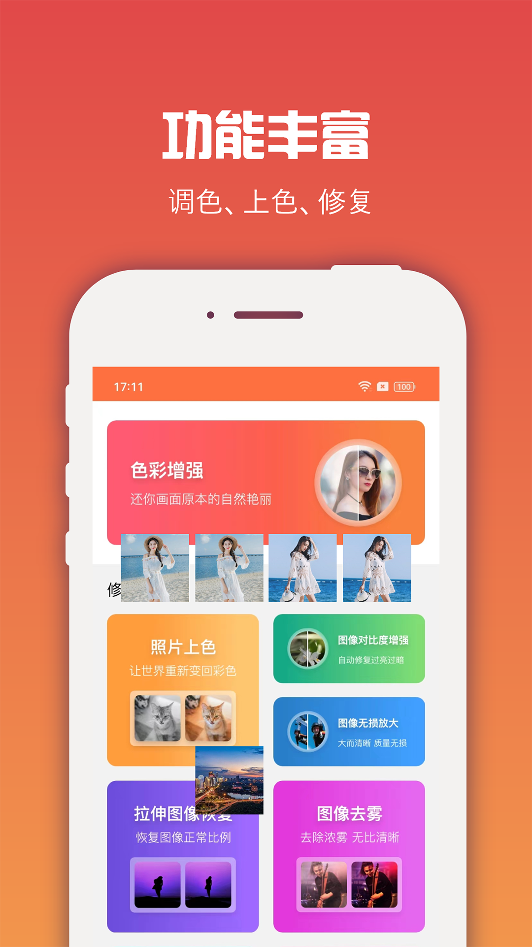 AI智能修图,自动优化照片细节,可智能识别面部特征进行针对性美化