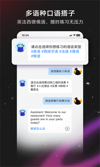 【陪练】软件提供丰富的生活场景模拟功能,您可以选择不同情境进行对话练习,如餐厅点餐、酒店入住、商场购物、医院就诊等日常场景。这些实用对话训练不仅能提升您的考试表现,更能增强您在实际生活中的英语交流能力,让您在海外学习或工作时更加自信从容。