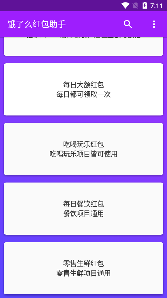 饿了么红包助手是一款专为外卖用户打造的优惠福利工具,它能帮助用户轻松获取各类红包优惠券,让点外卖更省钱。通过这款应用,用户可以领取到饿了么平台上的多种红包,包括餐饮红包、生鲜红包、商超红包等,每日更新,确保优惠不断。无论是新用户还是老用户,都能享受到实实在在的折扣,让每一笔订单更划算。操作简单,界面友好,无需复杂步骤即可领取红包,是提升外卖体验的实用助手。