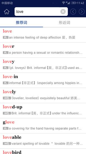英语词典软件是一款功能丰富的智能学习工具,专为英语学习者打造,集成了海量词汇库、权威释义、真人发音和实用翻译功能。它不仅支持多平台同步使用,还能根据用户的学习习惯提供个性化推荐,帮助用户高效掌握英语知识。软件界面简洁友好,操作便捷,适合从初学者到高级学习者的不同需求。无论是日常查词、发音练习还是系统学习,这款软件都能提供全面支持,让英语学习变得更加轻松高效。